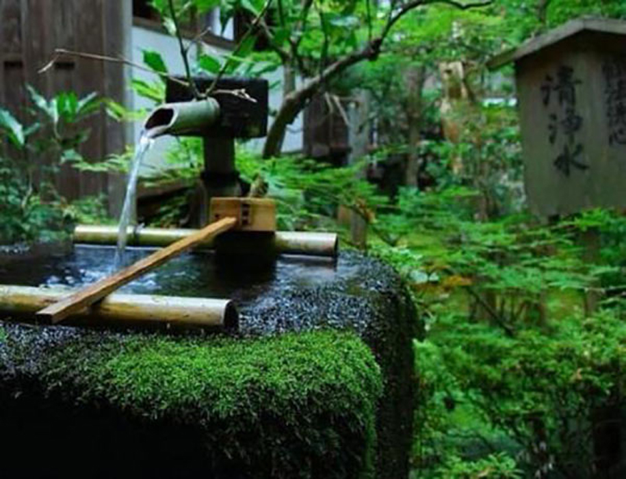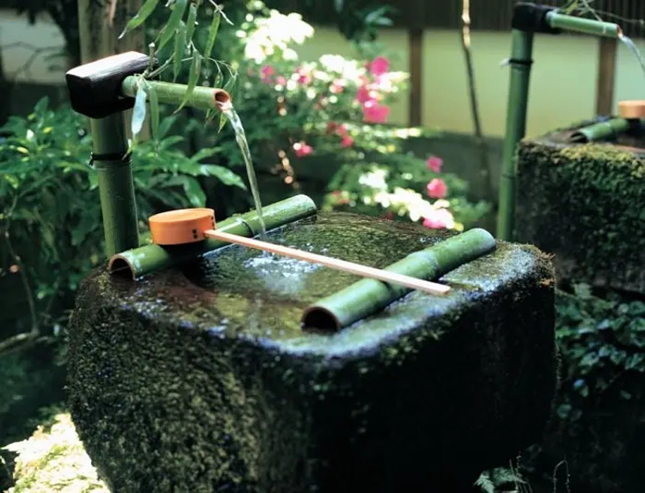 到了后來漸漸演變成庭院的裝飾小品,也可用于洗手,在日本茶道的一項重要儀式;又因為有水和竹子敲打石頭的聲音,使得靜態(tài)的庭院景觀有了動態(tài)的感覺,蘊含了日本文化中的“禪”文化,因此也被稱為添水(そうず)、僧都(そうず)。
