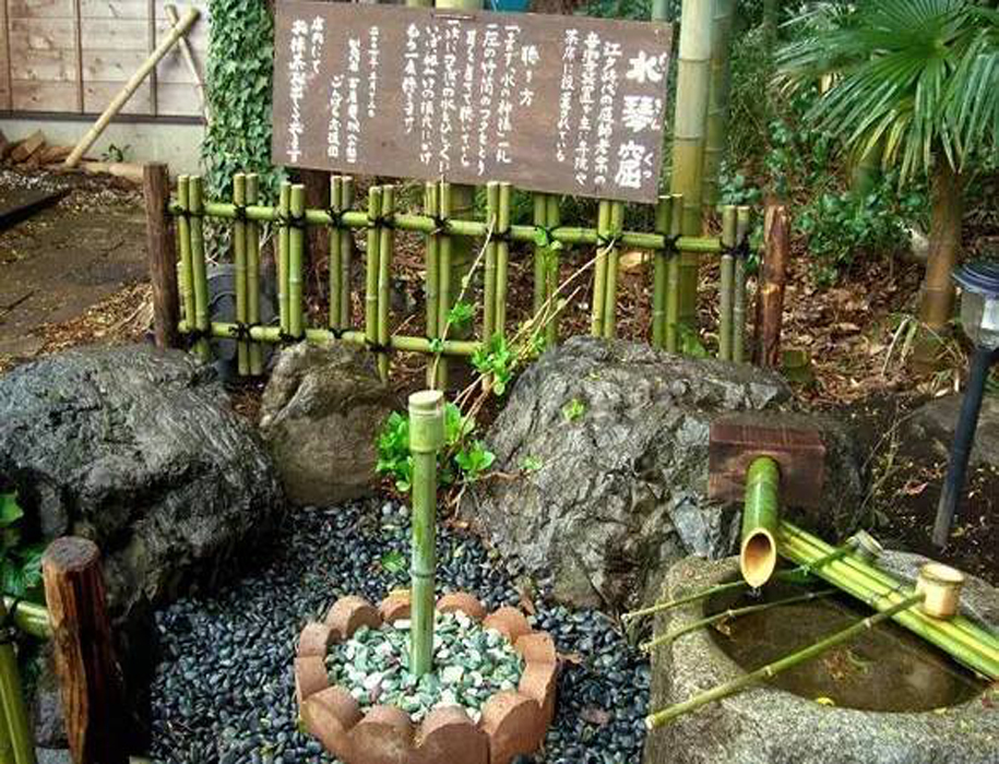 水琴窟通常設(shè)立在手水缽旁邊,而這些手水缽往往設(shè)立在茶室的入口處,供進行茶道儀式的客人洗手之用。
